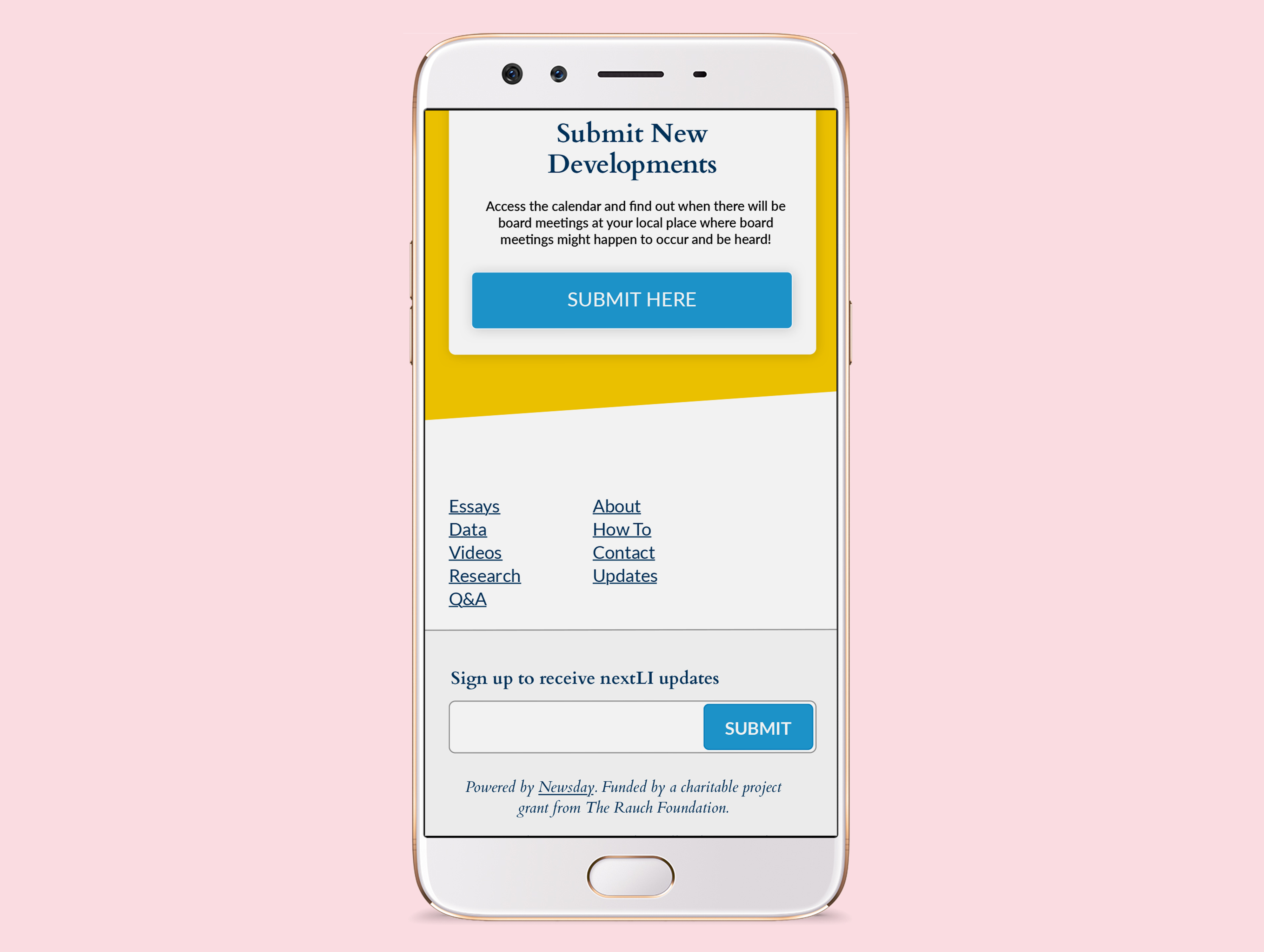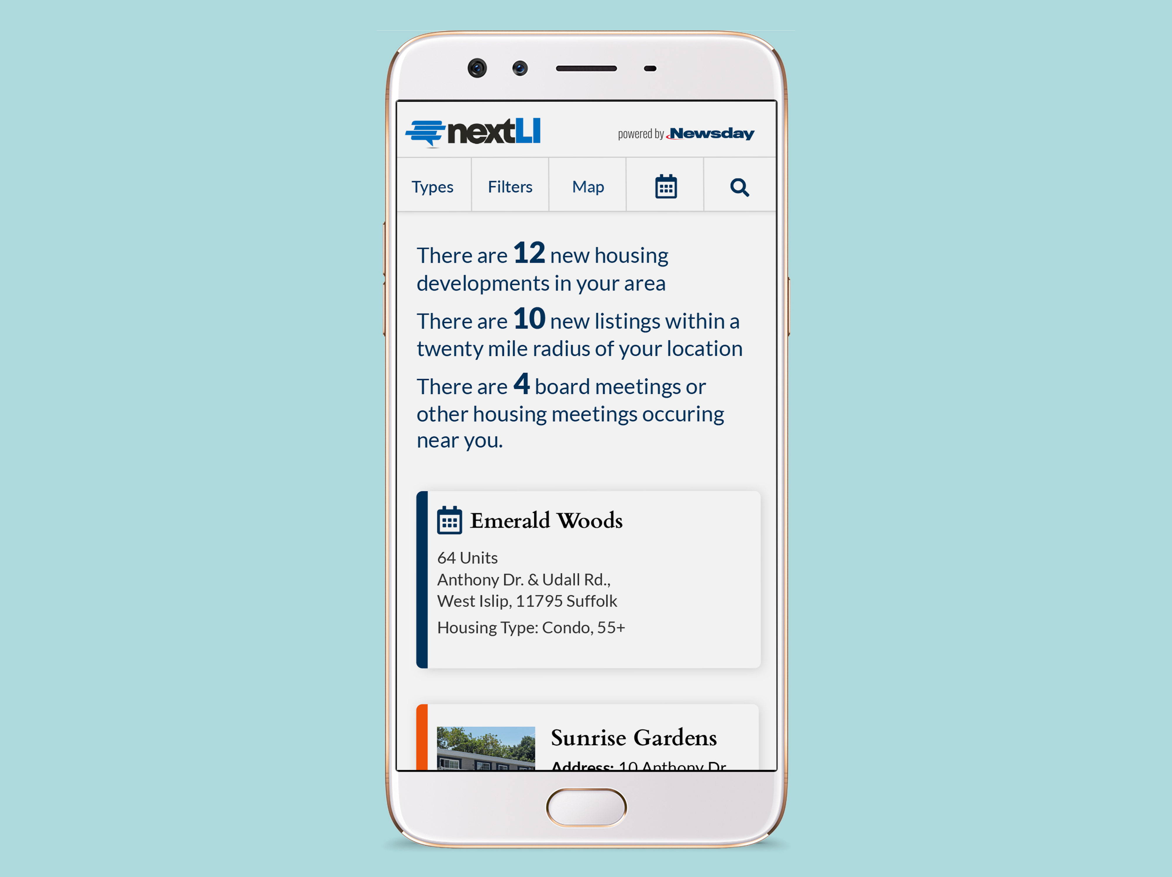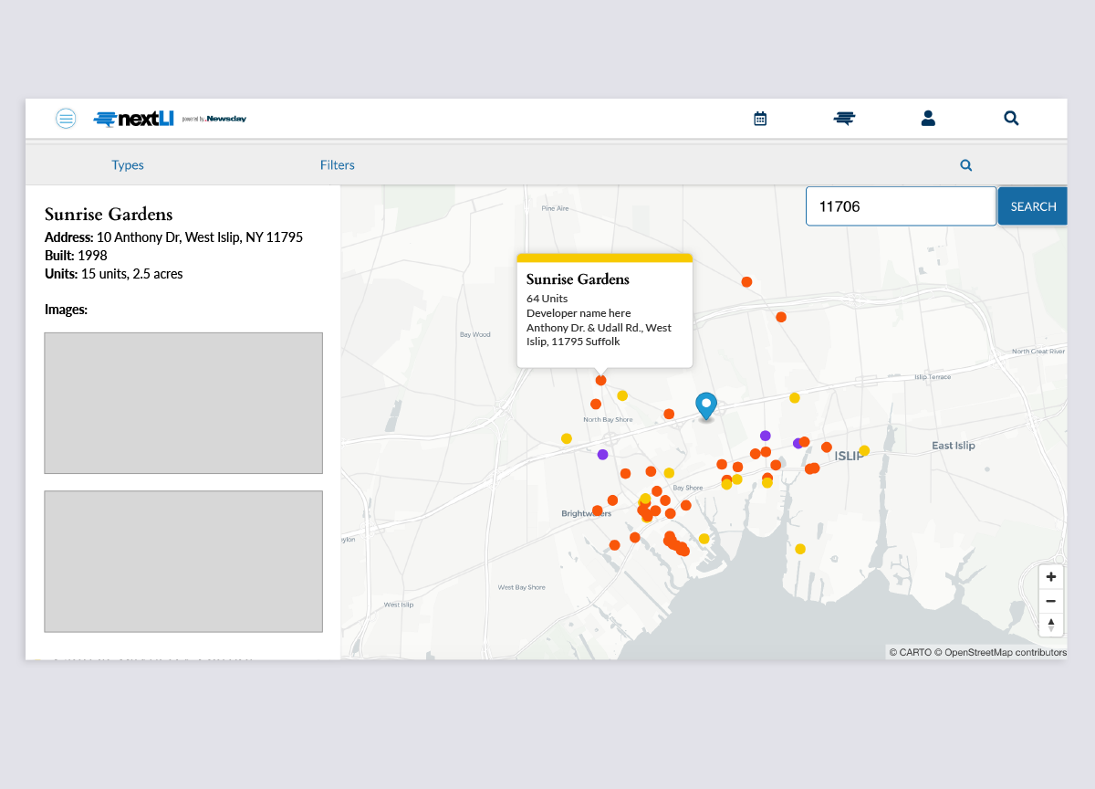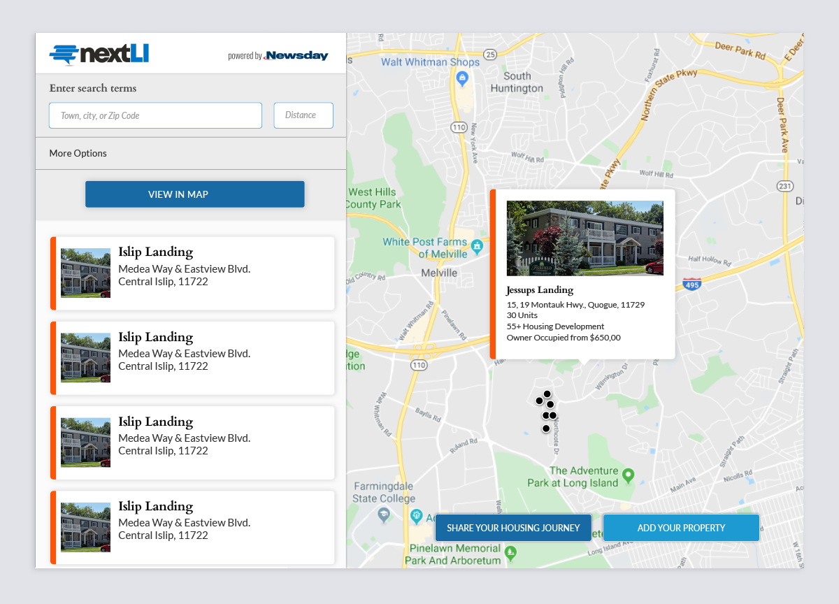 My second project at Newsday Media Group was to redesign a series of interactive maps. Originally one map containing a dozen different layers, we broke the maps out and worked on the housing information data first. Instead of a map with information, I designed a landing page, to better communicate information to our users, on where to find zoning meetings and submit housing information, before taking them to the map with real estate information. This solution better told the story of our maps, and enables our users to find the information they need.